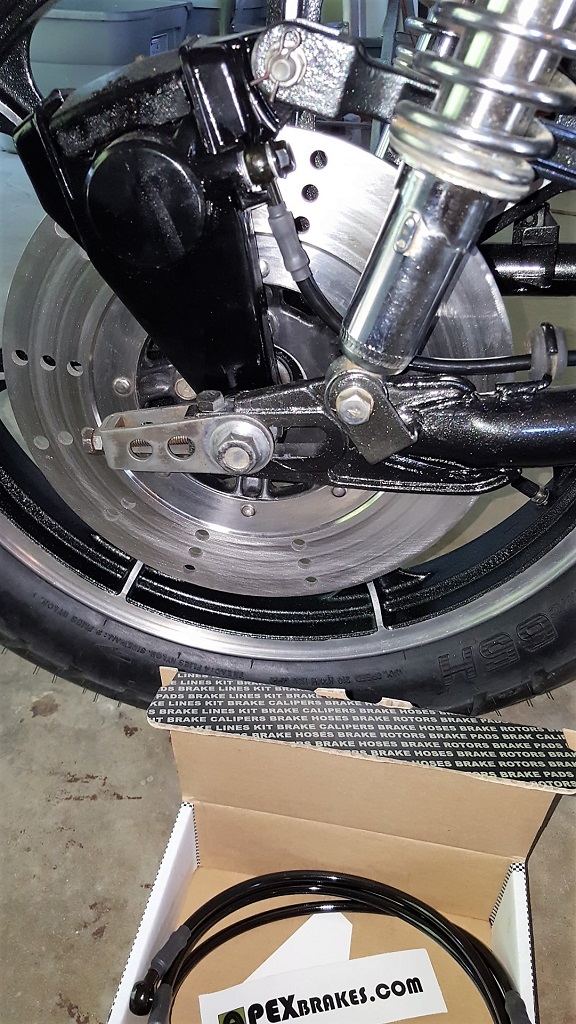 I had a few hours on my hands last week between risky, unworthy moments of near electrocution and a recent shopping list of parts had begun to pile up so while the tank was be blasted with electrons I set to putting more of KZombie together. I found a good deal on complete stainless steel, brake line kit on eBay and was pleased with the results: