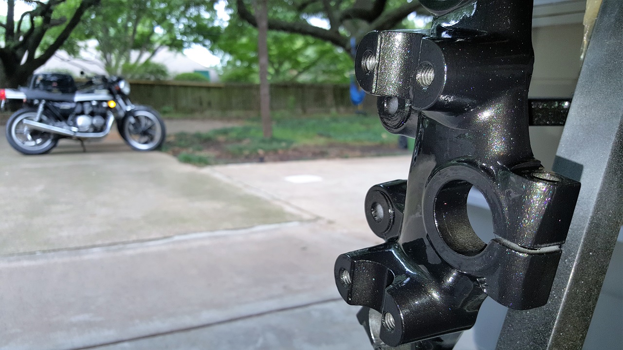 So, by now it was 4pm and just out there in the driveway, my KZ550 was calling my name. It still hadn't rained even while looking threatening enough to so I hopped on the bike and went for a mad scramble around the neighborhood. Throwing caution to the wind; no helmet, in shorts and T-shirt. Just scooted around for a few minutes to give the bike a good warm-up and then came back home and parked it in the garage next to the curing paint. I figured I may as well make the KZ550 my bake oven :lol:
