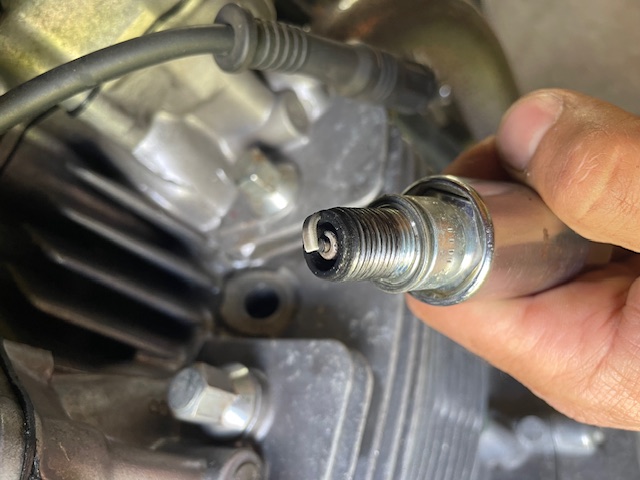 Left cylinder spark plug, compression reading before and after adding oil: