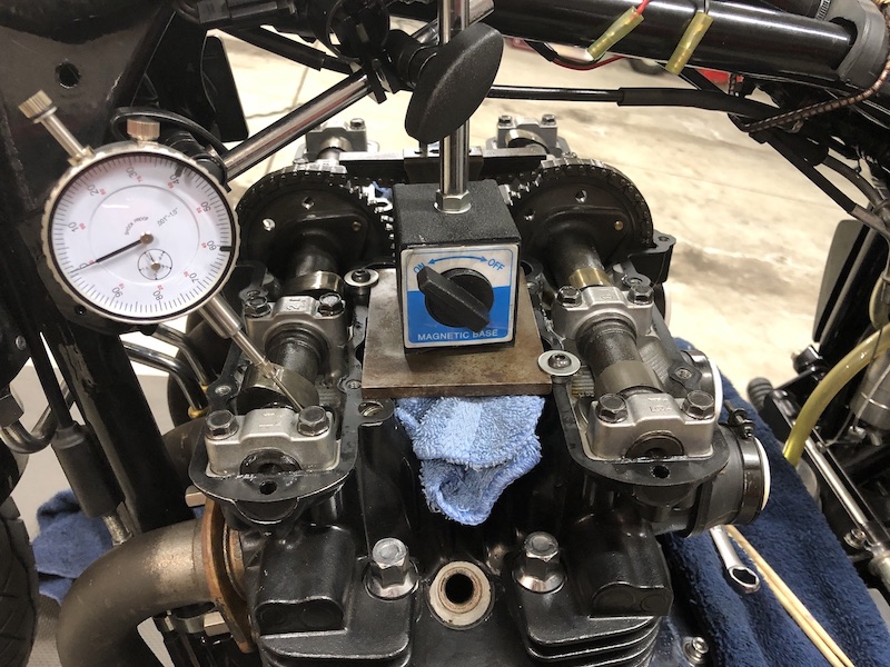 Degree-ing in the cams. I use a zr-7 cam chain tensioner to ensure I have the proper deflection in the chain when I indexed the cam gears.