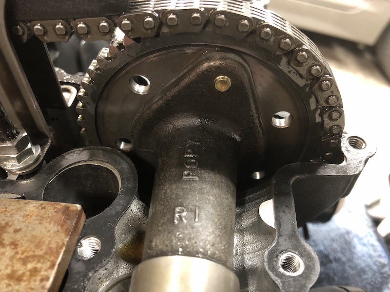 Cams at TDC when degreed to 105° lobe centers. It’s hard to tell from the angle of my photo, but the cam gear timing marks are perfectly aligned with the head surface, which let me know that I was at least close to what Yoshimura intended….or at least wouldn’t put a valve into a piston.