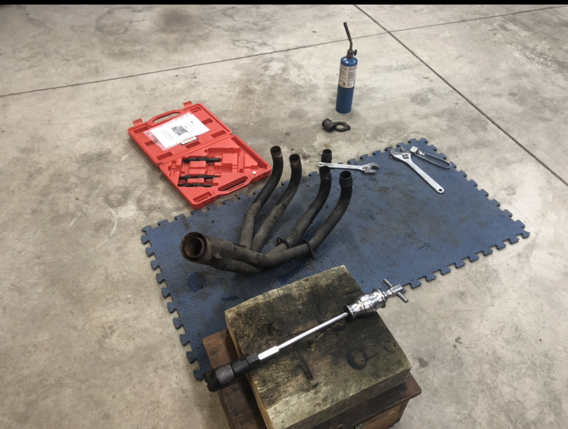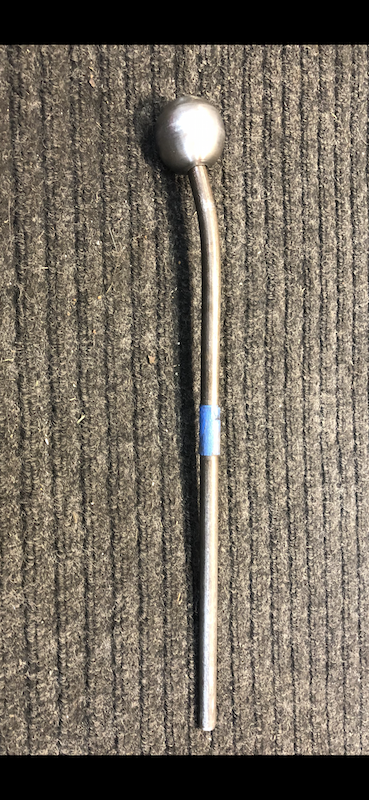 Some of the header pipes were dented from someone hammering on them to try to remove the header while it was on a bike. So I found a soft steel ball in the same size as the inner diameter as the pipes and attached it to a steel rod and pounded it down the tubes to push out the dents.