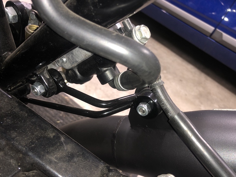 I then had to fabricate a new exhaust hanger to support it all. I used the two bosses on the frame that originally held the rear foorpeg/rear brake bracket. I am very glad I decided not to shave those bosses off the frame as I initially wanted too.