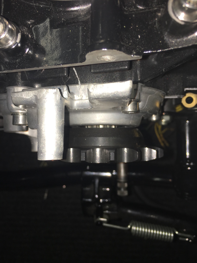 Install the gear shift mechanism to the shift drum. I then spun the input shaft with a cordless drill so I could get past the neutral lock out and made sure I could select all six gears before going any further.