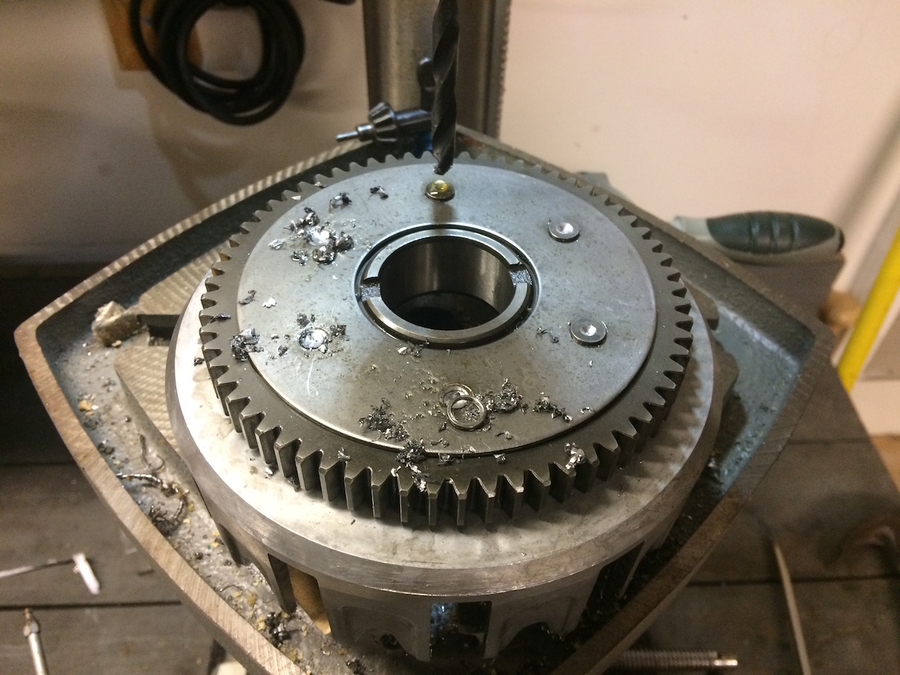 The cover can be welded on, or screwed on. Because I don’t have a very good welder I chose to screw my cover back on, as the cover is very thin and I would have ended up warping the crap out of it or destroying it all together. This required pressing out the old rivets (much easier said than done) and tapping new threads in the rivet hols. Because there is so little clearance between the back of the clutch basket and the engine case, I had to source ultra low head bolts to screw the cover back on. There is only space for 1.5mm of weld or bolt head to stick out from the cover.