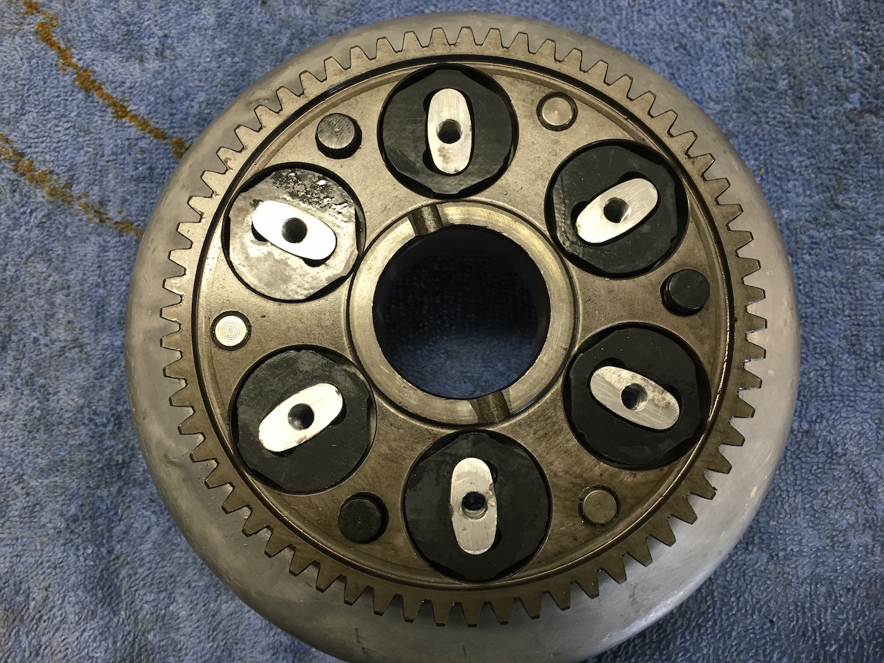 So I also had a ton of slop in my clutch basket so after much research I decided to try and replace the rubber dampers in my clutch basket. The dampers are not designed to be replaced by Kawasaki so they don’t sell the dampers separately. So I first bought new Viton rubber reproduction dampers from a guy on 750turbo.com (There was a pdf of step-by-step instructions on their site on how to do this mod, but I don’t know how to attach it.)