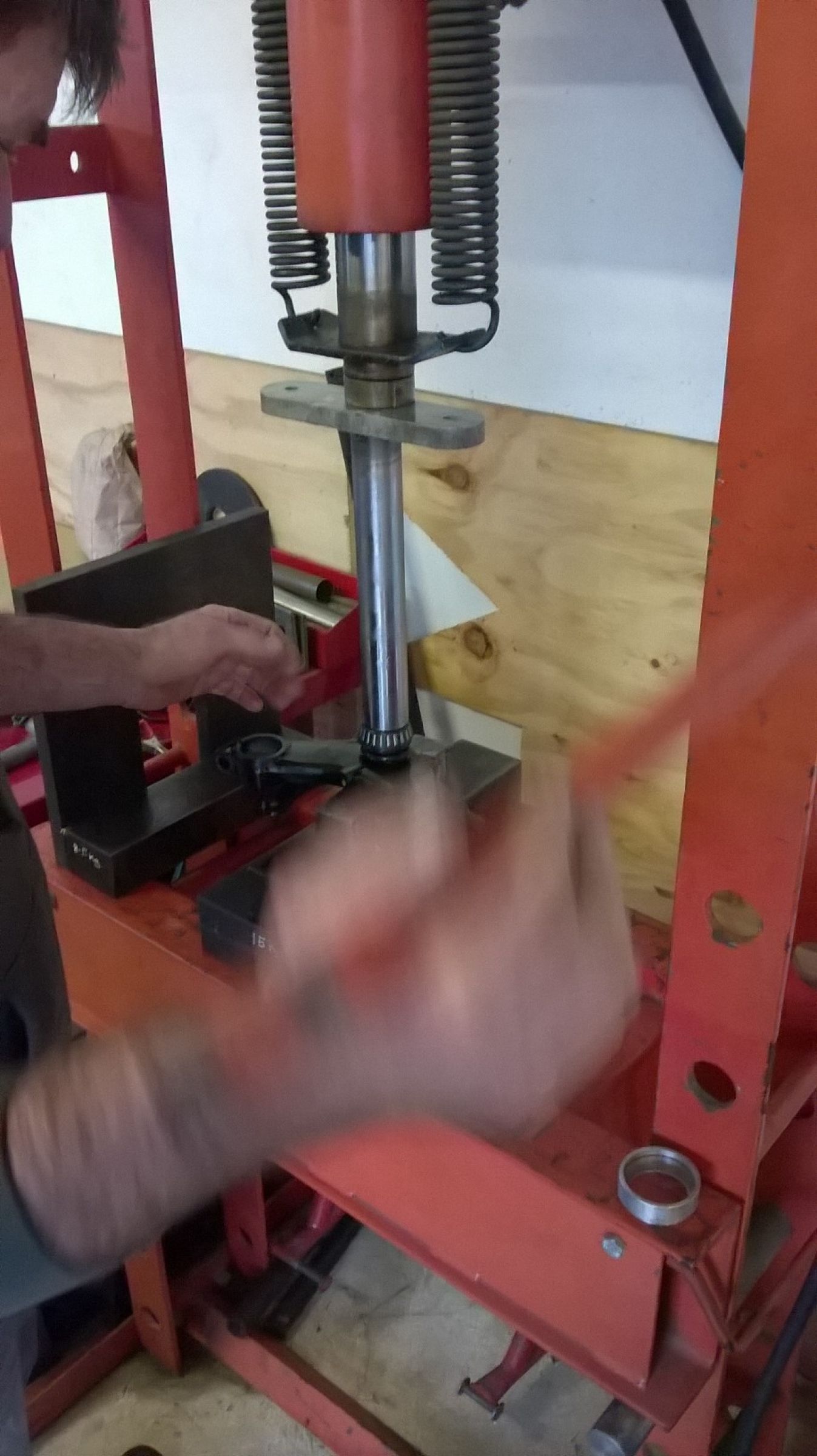 Action shot of my mate Eddie pressing the bottom bearing on. Beats me beating the shit of it with a bit of pipe and a big hammer. Amazing how easy the job is with the proper tools lol.
