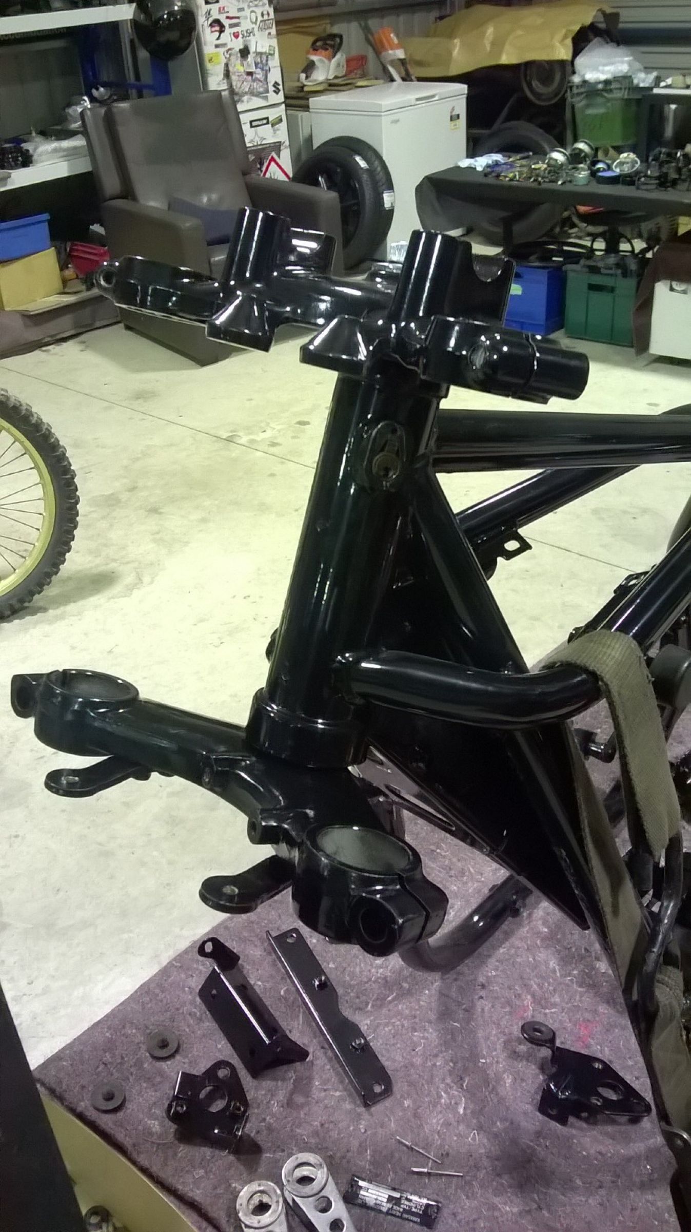 Hey presto, got a triple tree installed ready for the forks to go in. Just need to pick up some fork oil tomorrow and hopefully should have most of the frontend in tomorrow night.