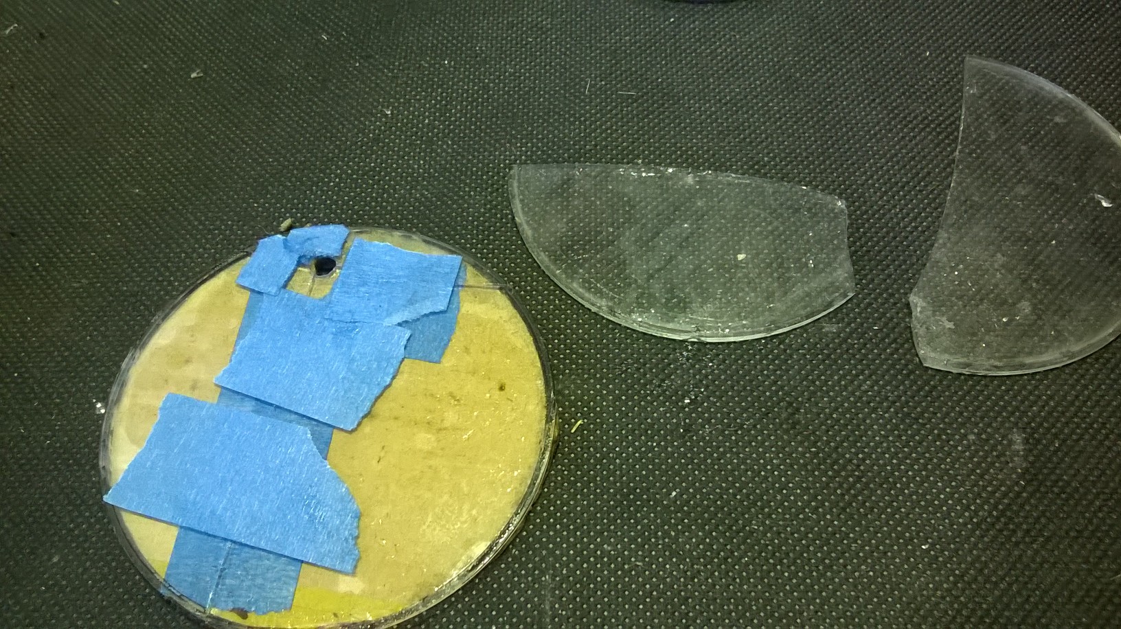 Luckily for me I had two spare speedos because the first go was a complete failure! I got a bit impatient towards the end and speed the drill up without enough water to cool the bit and glass. Result, one more broken bit of glass!