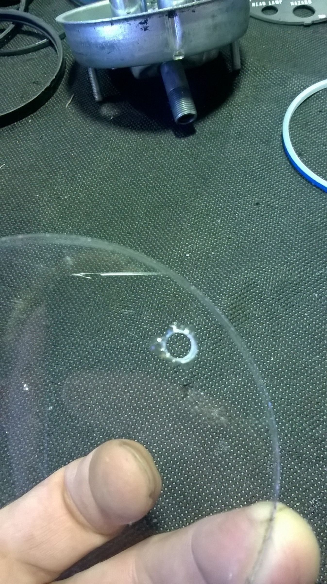 Today was the day to sort out my broken glass from the speedo. Luckily enough I found a couple of old speedos in a box at the back at the shed. I pulled the glass out of them and all I had to do was make a hole in the glass for the Z1R trip which exits out the front. To be honest I have never drilled a hole in glass before so I asked the guy down at the hardware store and he sent me home with diamond head drill bit. Apparently the ducks nuts for drilling holes in glass.