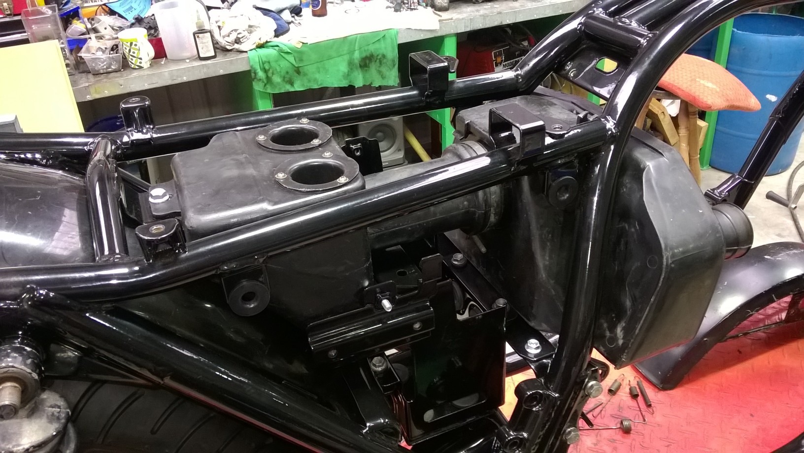 Hi all, back again with another addition tacked on to the Z1R. I scored a complete airbox system a few months ago and thought I would clean it up and see if it all fits. No worries there and it made me feel good adding something else to the bike even it is coming straight back off lol :laugh: