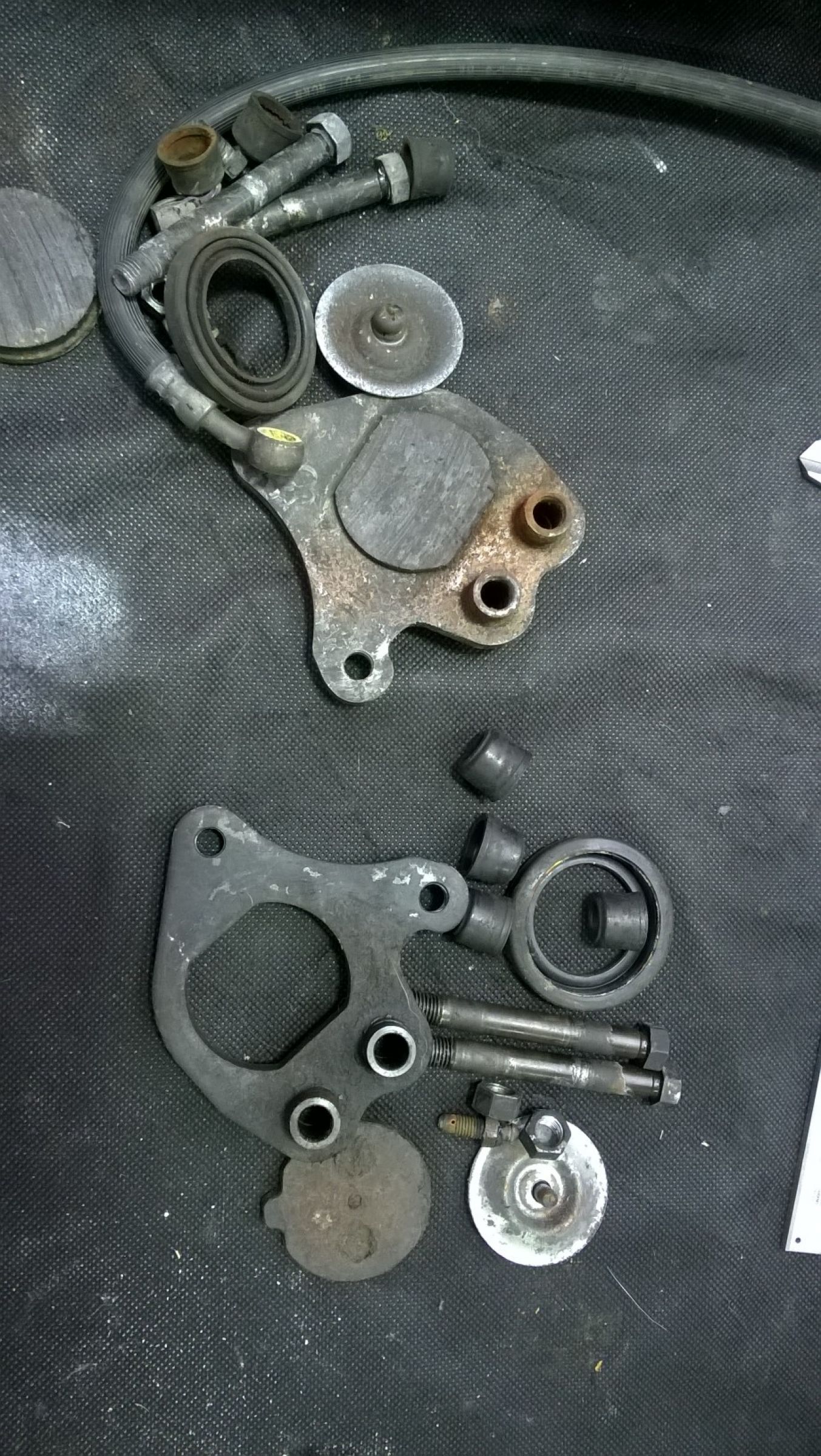 Finally got some time to do a few things on the beast today. Since I now have a nearly rolling chasis I thought it was proper and fit to sort out some brakes for her! I finished the back wheel and I don't want to fit it until the rear caliper is ready to go. Soooo rear caliper would probably be the priority lol! Front calipers aren't to bad but the rear is utter utter poop. I did get it to bits and one piston out but the other is firmly stuck in. I have it soaking in CRC for the night and hopefully it will come out with another concerted effort. Off to order some caliper kiits now!