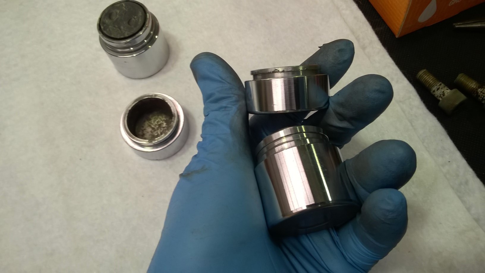 Wow, i looked at the date of the last post and she's been a while! Got sucked away with work and just haven't had a chance to get near the Zed. Luckily I have had a chance this weekend to start doing a few jobs. Calipers are the job of the weekend so I started by glass blasting the mounting hardware while the calipers sit and soak in some degreaser. Specially the back one as it's full of grease from squishing out the stuck piston. Tomorrow i will crack on and glass blast all three calipers ready for painting. I ordered a bunch of parts from Z1 and with them is all the rebuild kits so i will be good to go once they are painted. I am using the old pistons mainly because the have no pitting and have polished up really well and because I can't afford new ones lol.