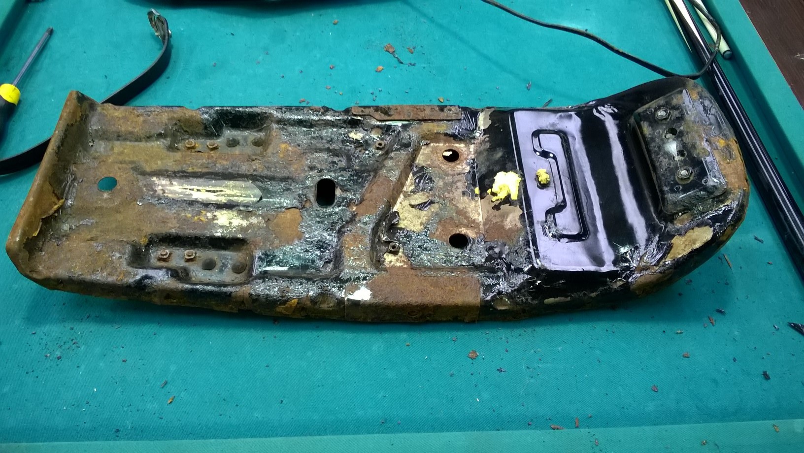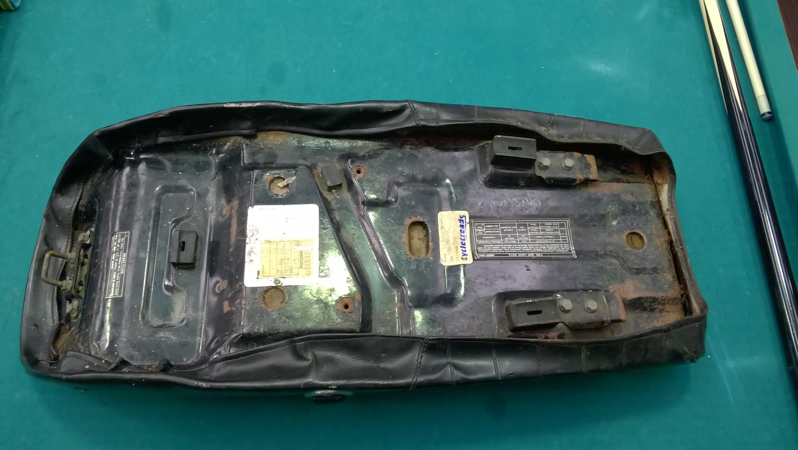 Ripped into the seat too today. The pan is pretty rusty and rugged but only a couple of cracks and with a bit of love it should be sweet as. Not 100% sure where I will go with the seat, maybe standard but just a little slimmer up the front. Will ponder that while the pan is away gettting sand blasted and painted.