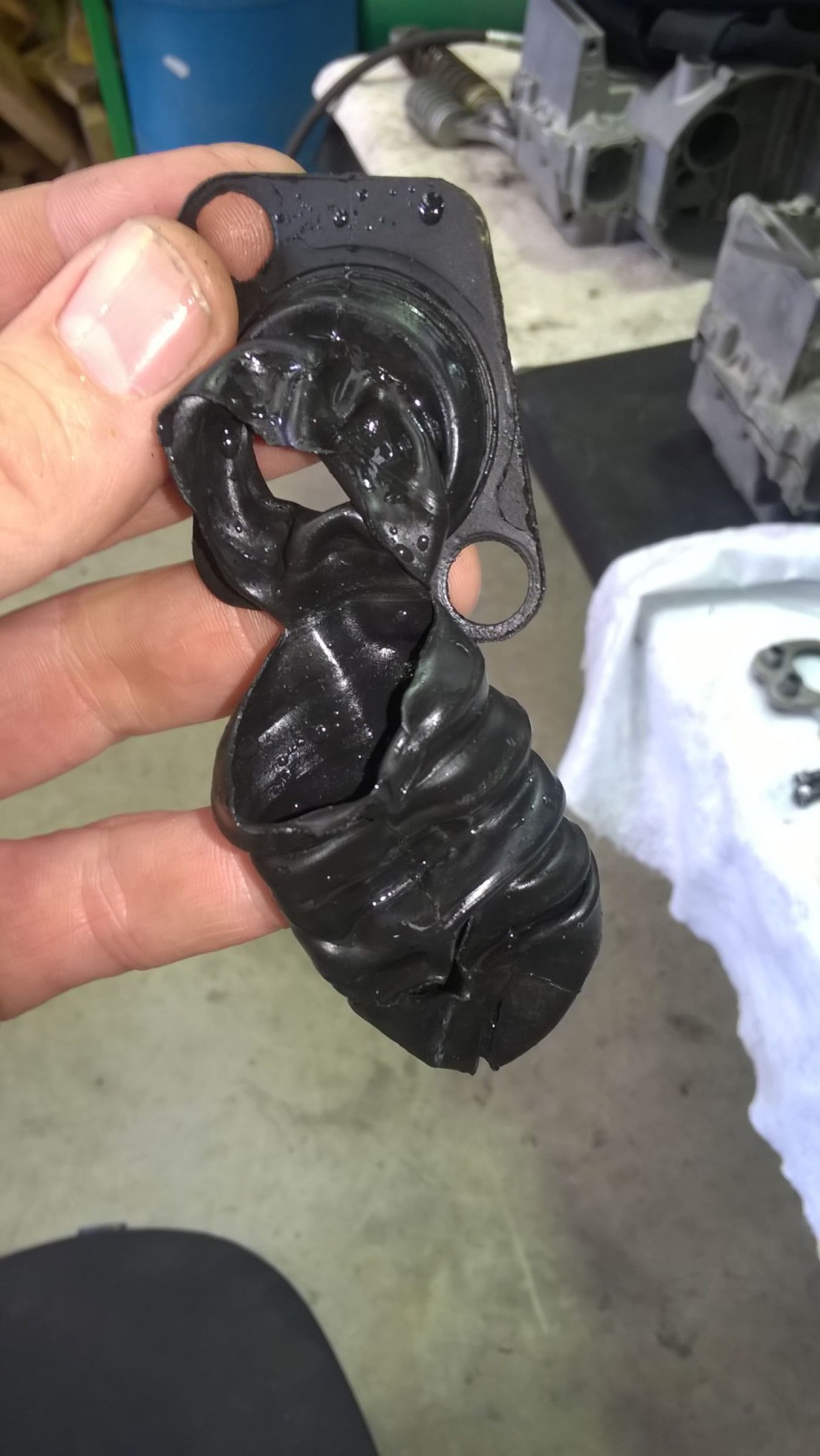 Had a bit of an issue getting the top off the front brake reservoir, had to resort to the drill and ezy out. Hate rounded off philip head bolts. When I finally got the top off I pulled out it's little condom looking thing and it was very buggered. God knows if you can still get one of those!! :ohmy:
