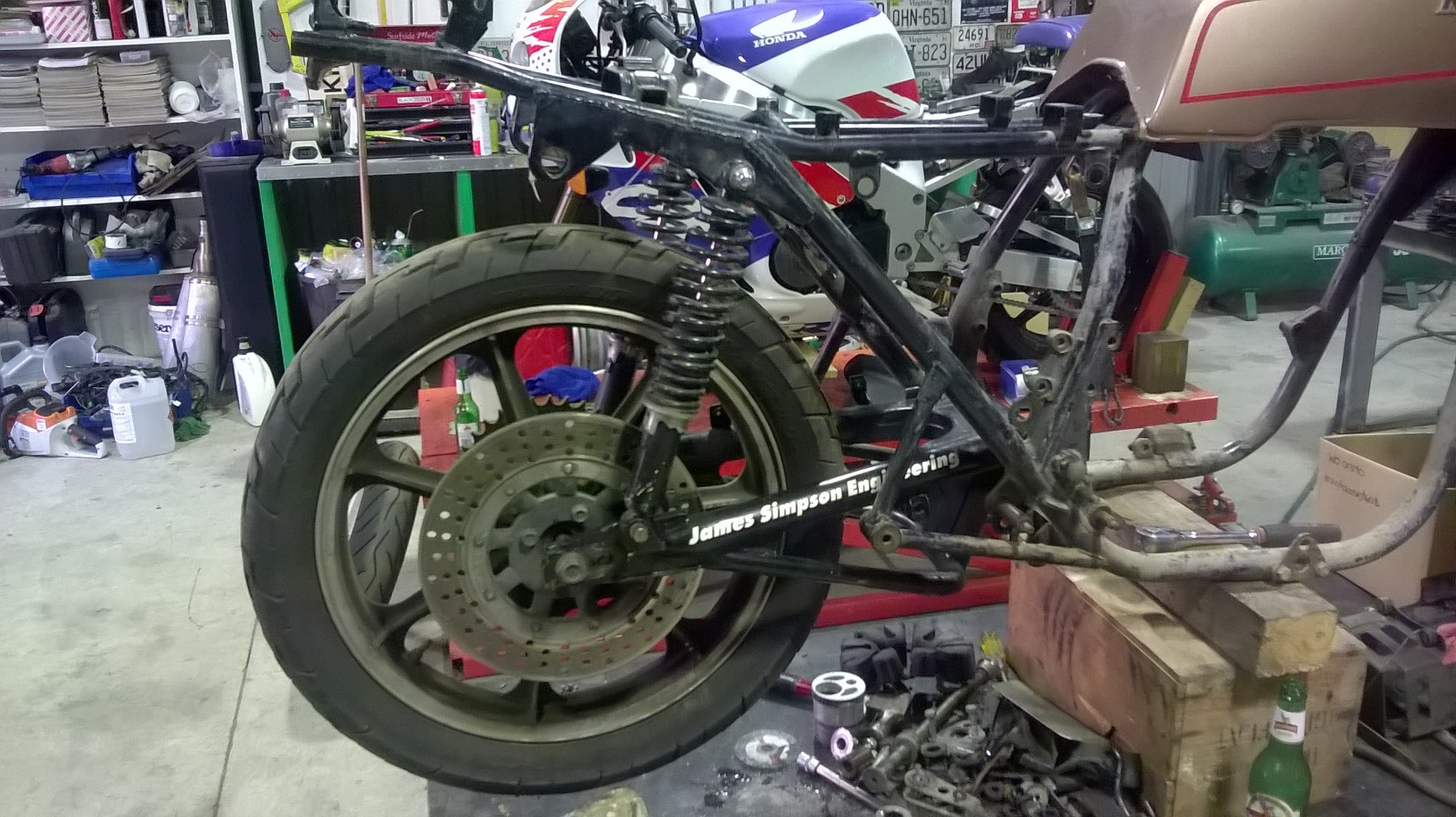 I popped it in for a look and am pretty certain that I will go down this route. I couldn't build a bike back to standard but I would still like the Z1R to use the original wheels and have the original style still pretty much intact. One thing I would like is to lay the shocks down but haven't decided quite how yet. Maybe off the rear of the swingarm or by making a mount for the frame. I don't want to cut or weld this frame if I can help it.