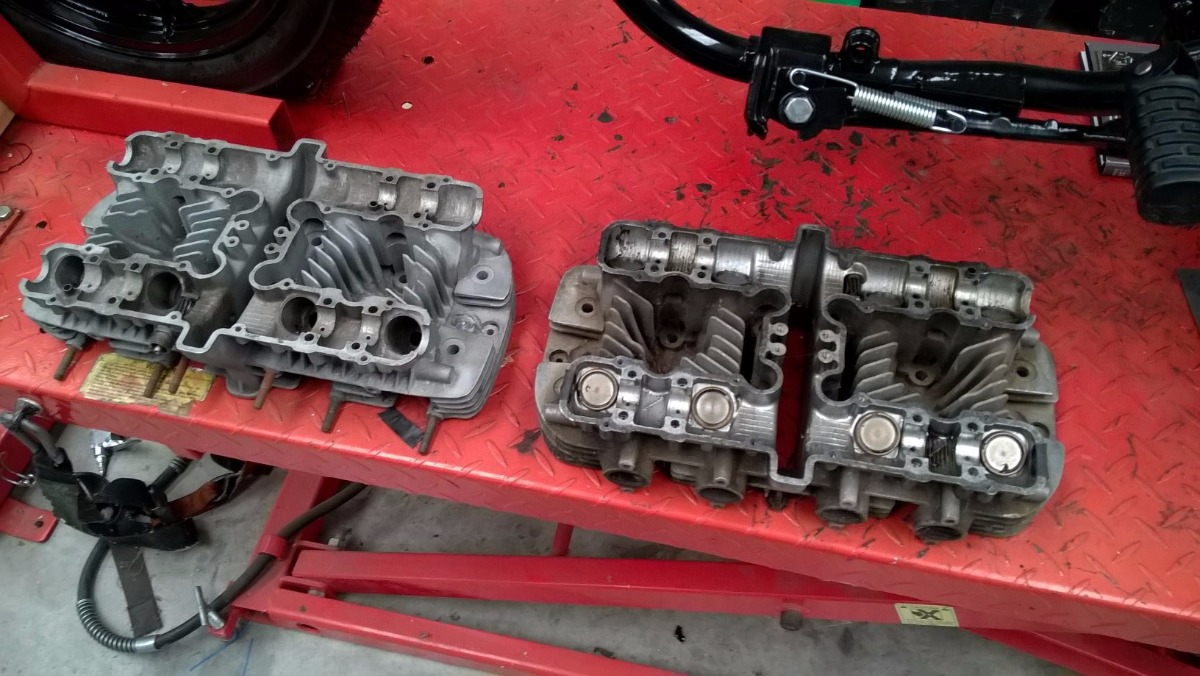 Dug the two head up that I have one looks like it has had a reasonable thrashing over it's life and has since had the plug holes welded up. Guessing they had started to crack, if you look at the photo of where the guides go in they are cracked as well. The other head has a snapped fin but looks to be in better nick. Just need to pull the valves out and have a proper look.