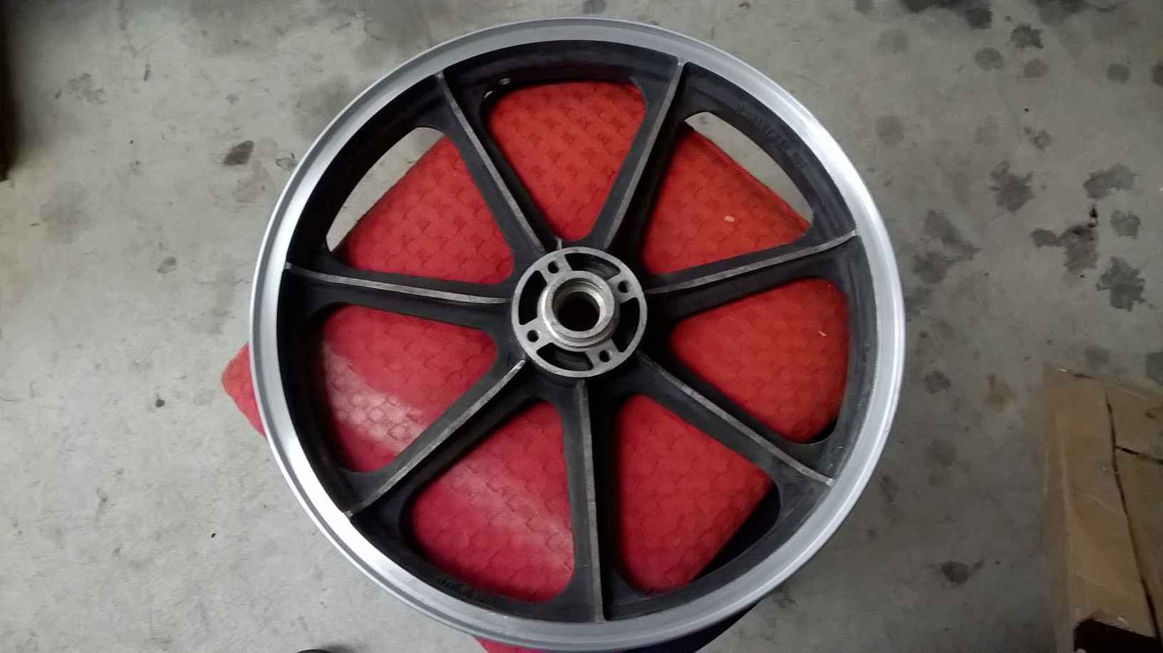 While we are on a roll I got my front rim back from being repaired. Here was the poor beaten, sad looking specimen before.............