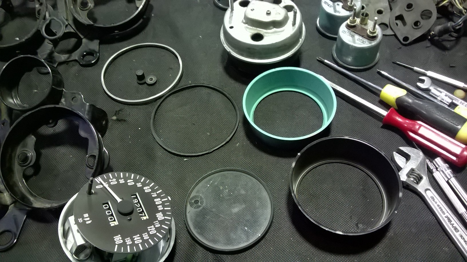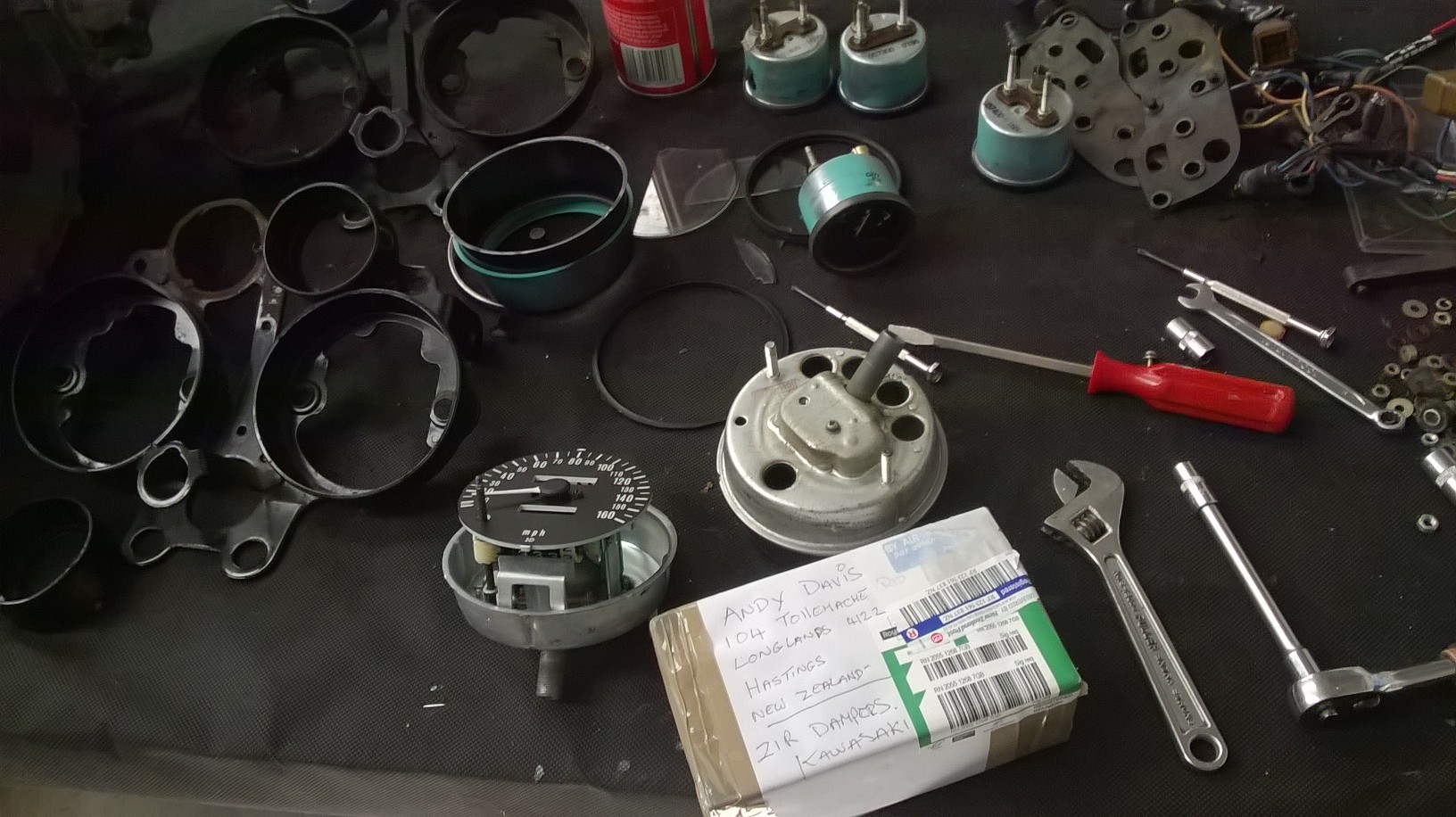 I have started on the restoring the clocks as well which has been interesting to say the least. I pulled the clocks apart on the KZP and all the repressed memories of lost skin came rushing back. So despite stabbing myself yet again with the screw driver I did get them apart. I have a pile of instrument parts to work from which is a bonus and big thanks again to Eddiem for hooking me up with the clocks! Speedo is in good nick and works sweet, just a bit faded on the face but a spit n polish and looks brand new (ish). Only bummer is the speedo glass broke in transit so I will have to get another piece cut.