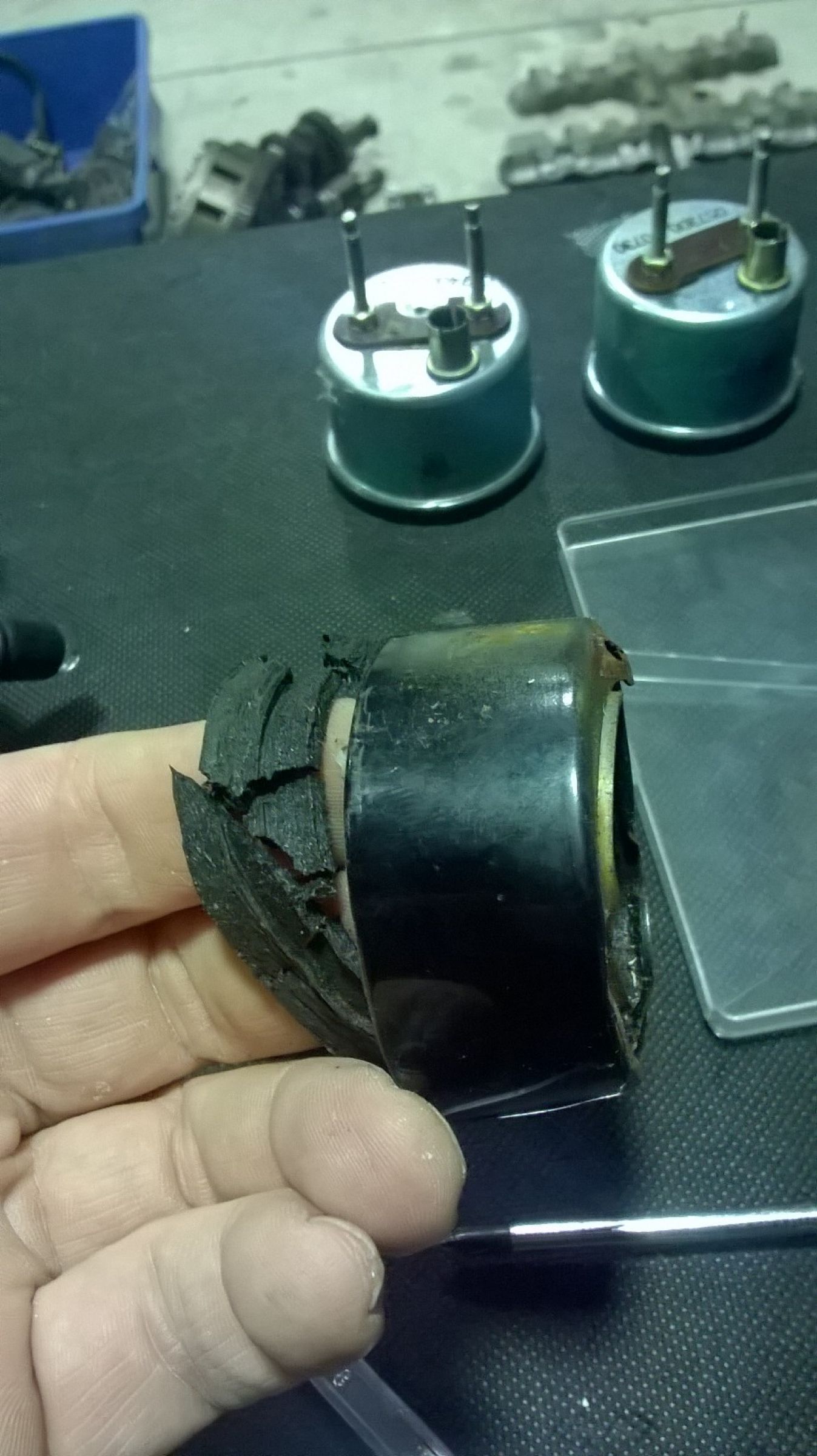 When I pulled the instruments out of their respective brackets the old rubbers that held them snugly in place were absolutely poked. They had turned into some nasty brittle mess which was no use to me anymore! I pondered this for a while and thought of a few ways to replace them since you can't by the OEM damper anymore. In the end my searching took me all the way to a good bloke in the UK that made a set of silicon replacements for me from a mould he had. Received them the other day and mint, they fit perfectly and the clocks will all be snug again!