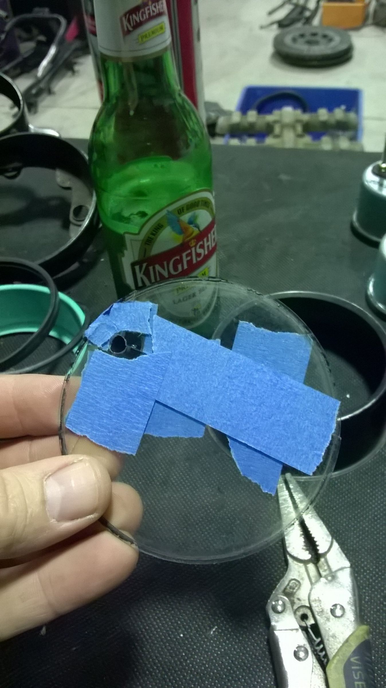 Taped the speedo glass back together to get a template so I can try and find a glassiers that will cut me a new one. Bit hard to see how fast you are going when it's like this!
