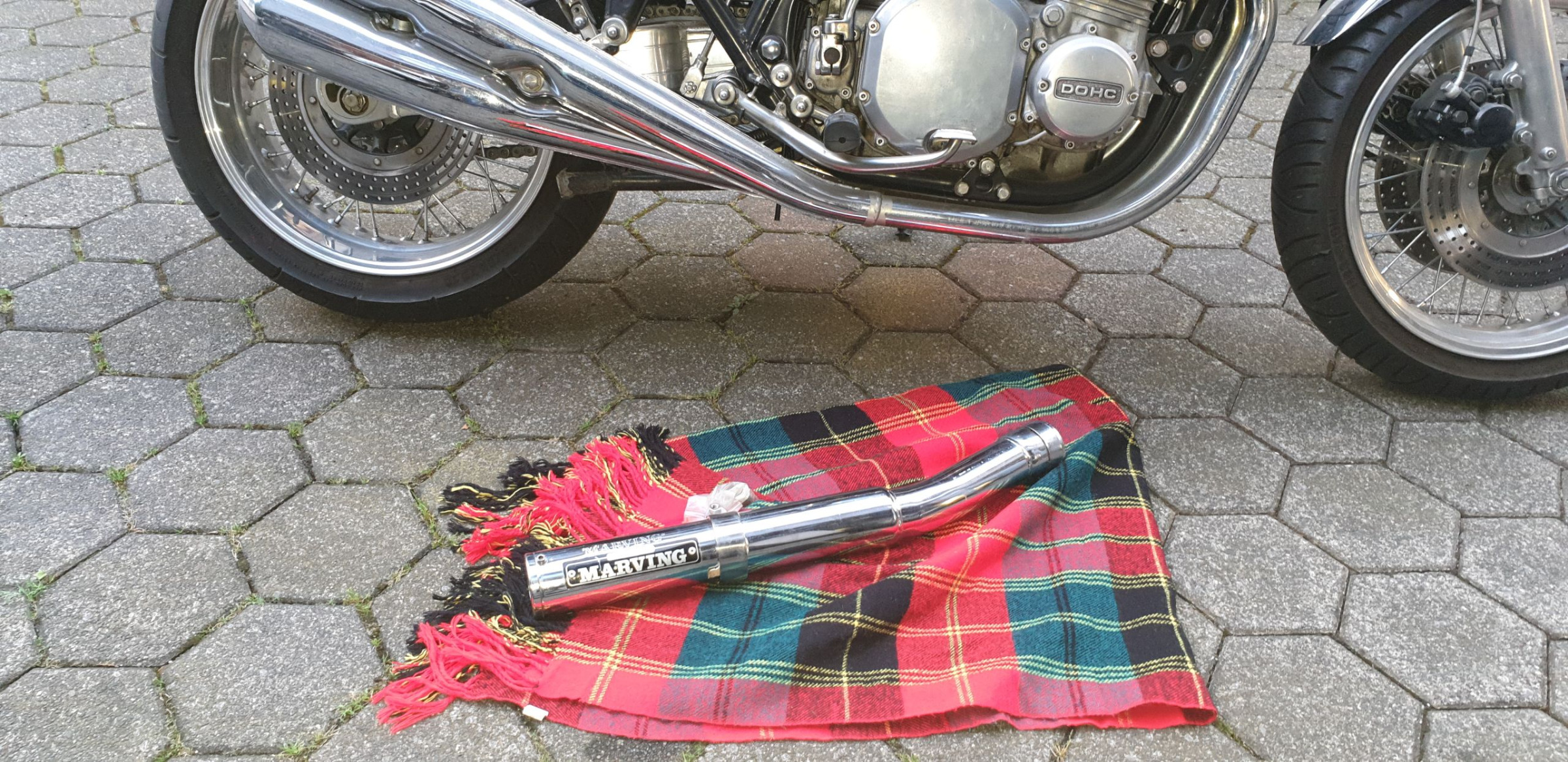 1978 KZ650 C2, 130K kms, Delkevic ex, EI, CVK32, PMC easy clutch, ATK fork brace, steering damper, braced swingarm, ZRX shocks, 18" Z1R front wheel.
