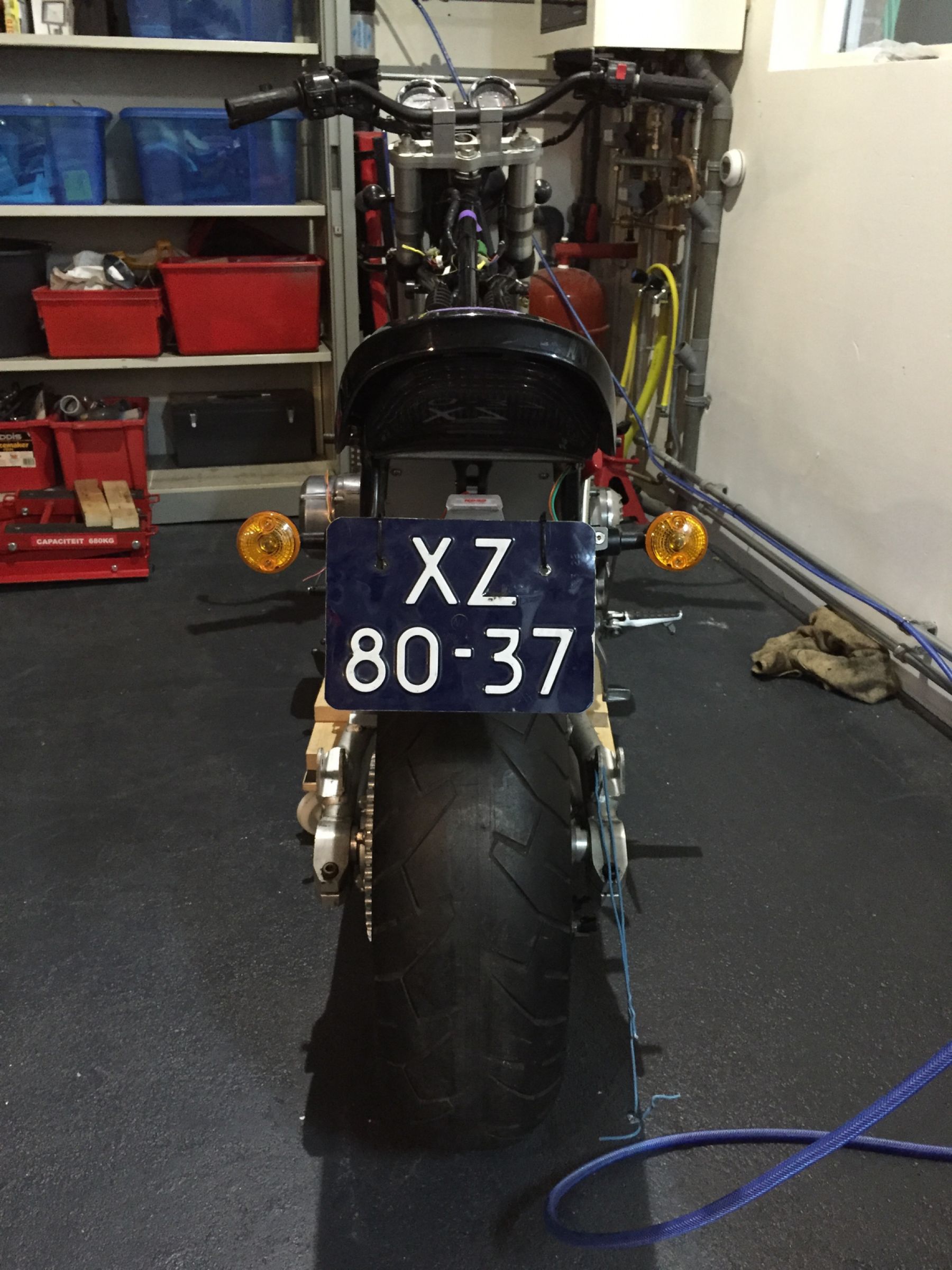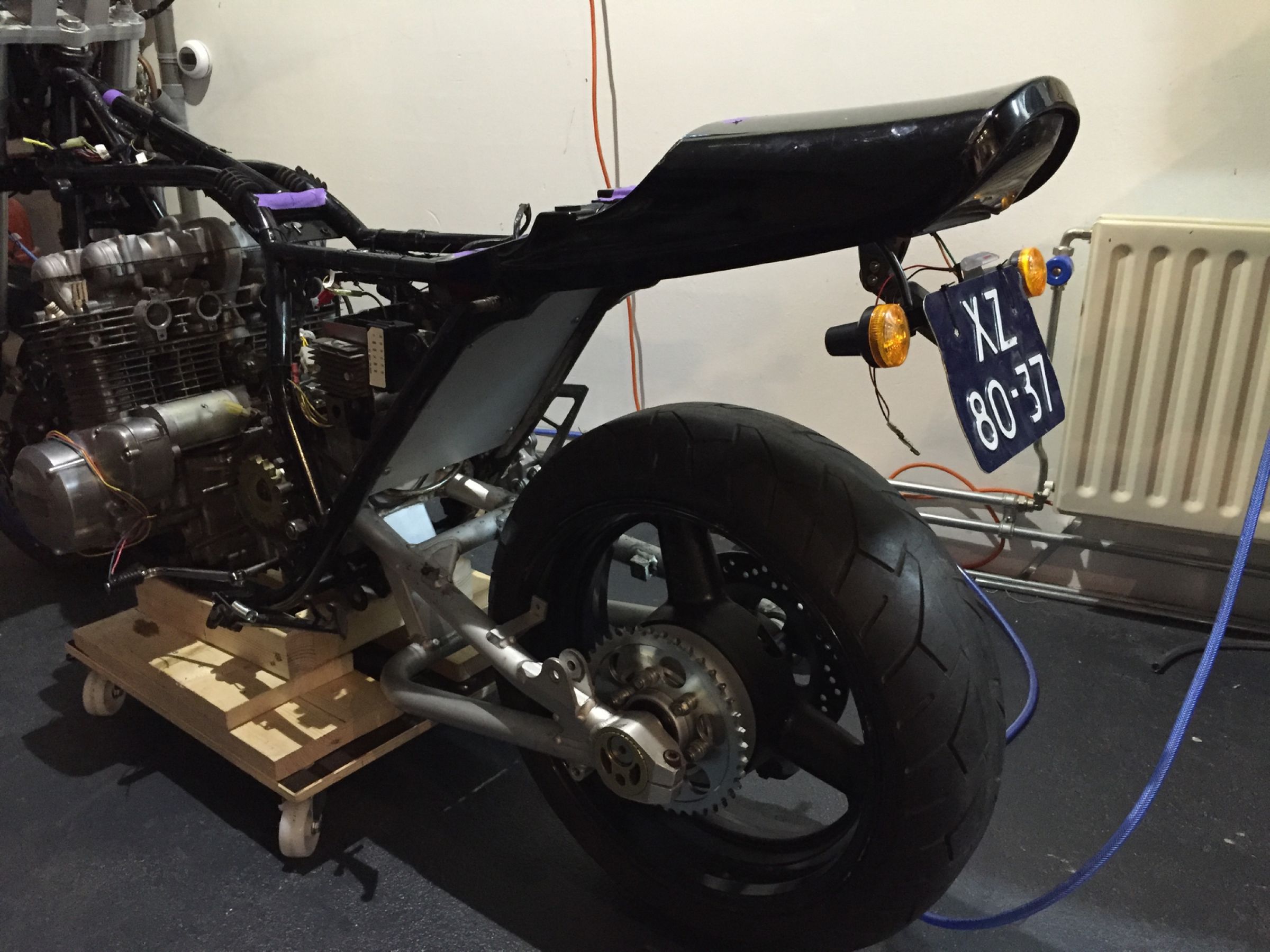 1978 KZ650 C2, 130K kms, Delkevic ex, EI, CVK32, PMC easy clutch, ATK fork brace, steering damper, braced swingarm, ZRX shocks, 18" Z1R front wheel.