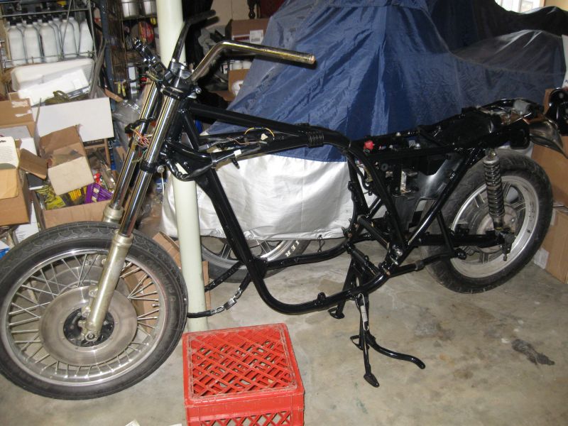 It's rideable now. slmjim's been itching to put a few shakedown miles on it... :woohoo: . In the next few weeks slmjim will ride it to the license branch so that it can be "safety-inspected" (read revenue generated) and the title duly transferred to KY.