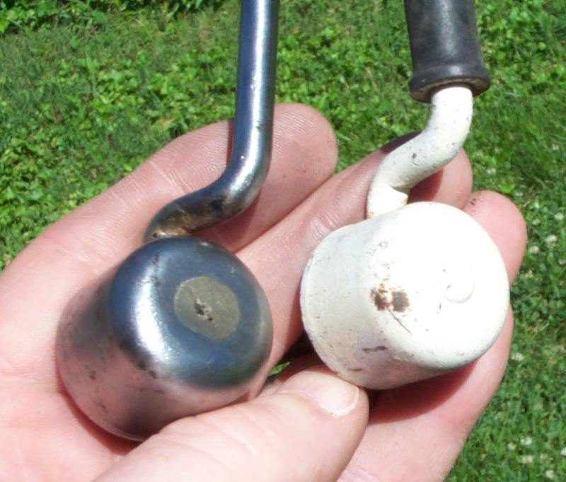 There were three seat latch assenblys including levers. The one on the left is brazed together, and correct for some unknown vintage of '72/'73 Z-1. The angle of the lever is also slightly offset from the rotational axis (not very apparent in the pic). The one on the right is pressed/riveted together (undoubtedly a less expensive method) and the lever is perpendicular the the rotational axis. It seems to be correct for very late '73 (model yr. '74) production. We used the brazed one.