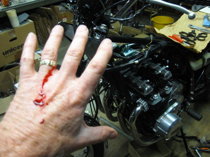 Z1BEBE wasn't home at the time so, wishing to share The Good News, slmjim texted a pic to her. She called, freaked out and asking if she needed to come home. Of course slmjim said no, he was just sharing the transformation of the project into a Project with her, and wanted her to know his good fortune. She was not amused for some reason... :silly: The next day it was noted where slmjim had even left a little blood sacrifice on the motor, so it's really properly christened.