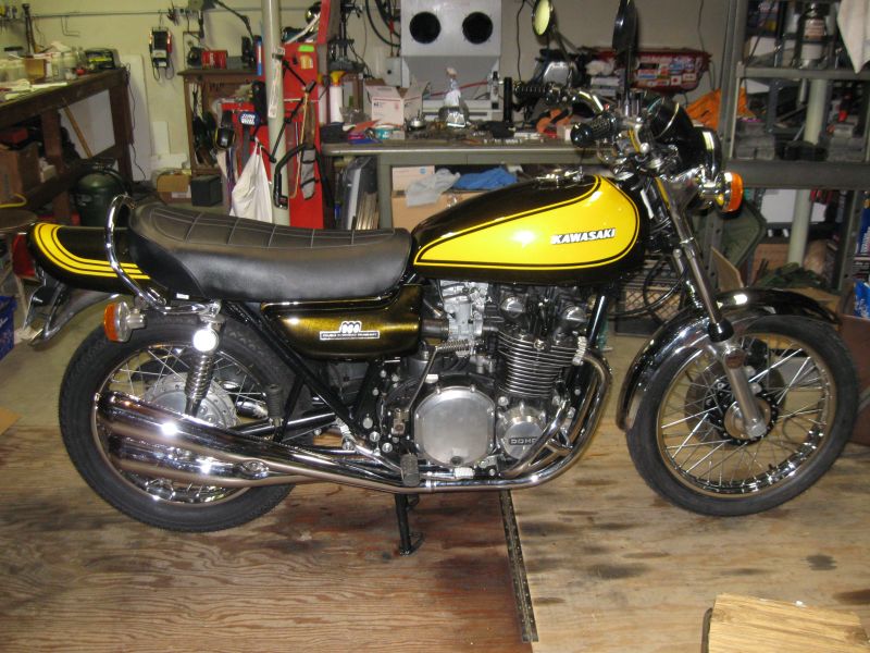 This bike is also the first time we've ever built a bike from scratch, starting from a bare frame and empty cases, one part at a time. We don't have the knowledge or tools to do complete valve jobs, but that's the only parts we didn't touch. We thought we knew Z-1's well when we started this project. We have been humbled. Would we do a basket case again? Likely we would. Guess we're gluttons for punishment