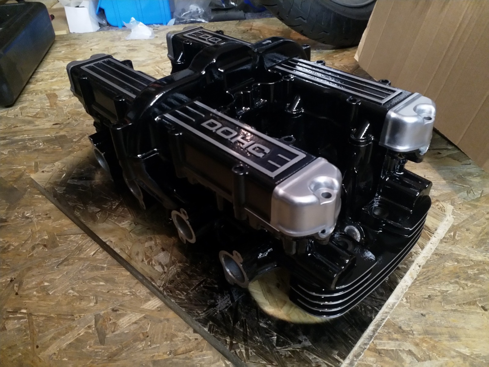 I clear coated the head and valve cover after sanding the highlights. The fins chipped in a couple of places when sanding so I wanted the extra protection, the valve cover I did mostly to hide the scuff marks - oops.