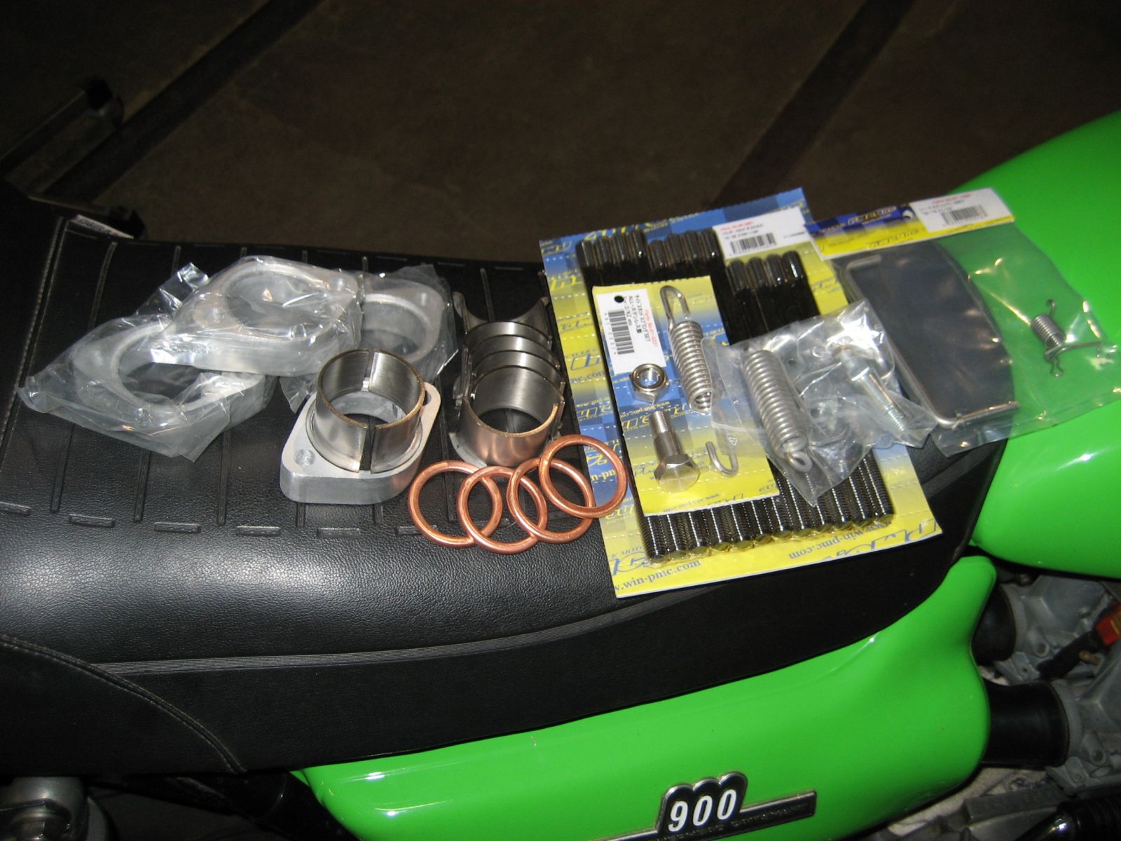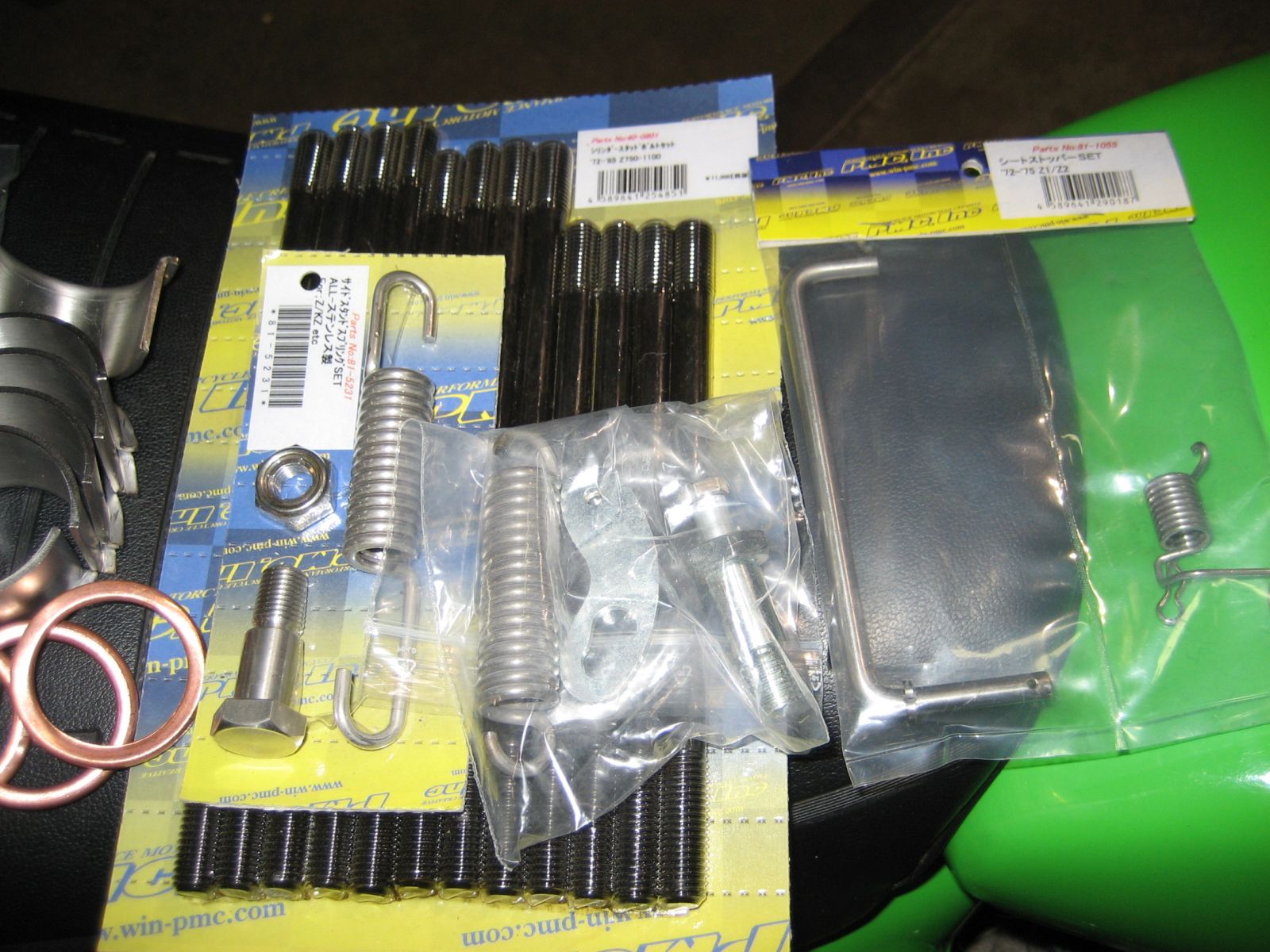 Today i was shopping at Z-Fever in Bochum and waste my money for some stainless steel parts like side stand spring/bolt/nut, (plus a self snap-in mod), exhaust header holder/inserts/gaskets, seat hook and some HD studs.