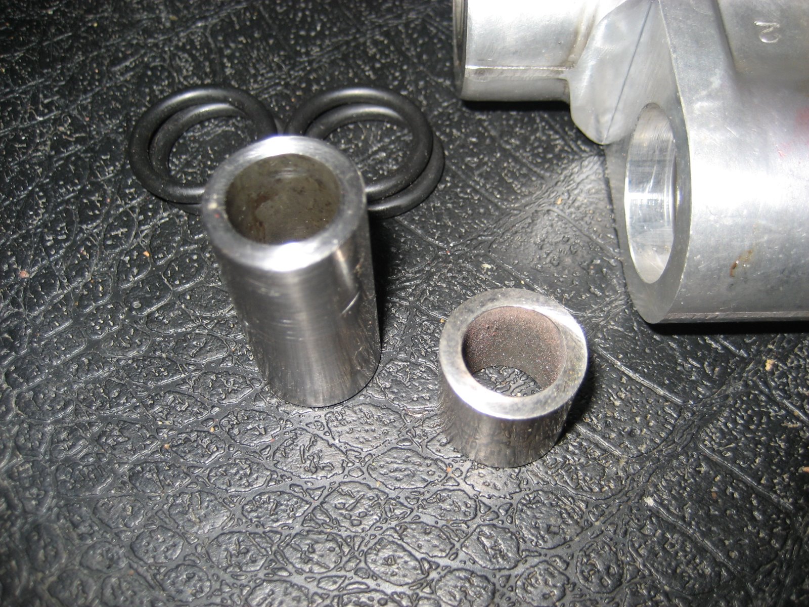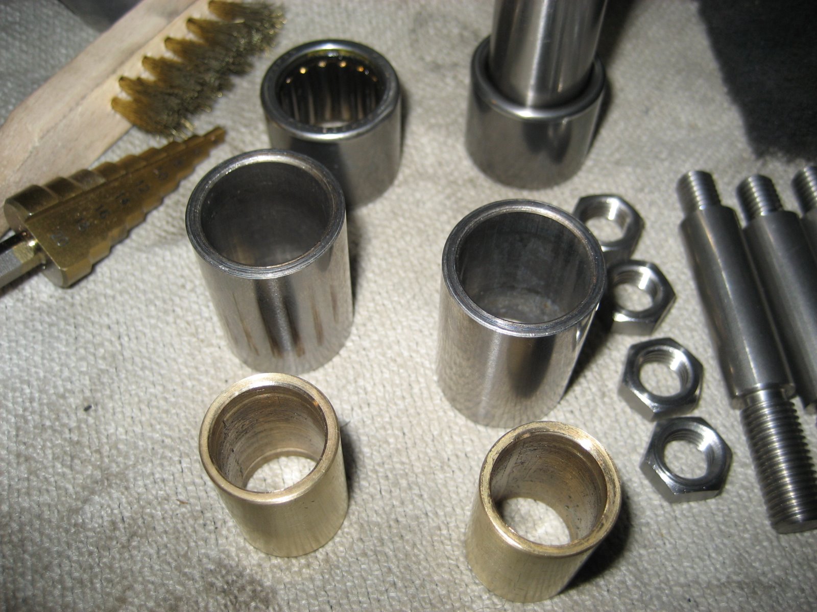 Made some brass tube sleeves for the Z1 16 mm OD swing arm pivot to press and glue into the 20 mm ID GSXR needle bearing tubes.
