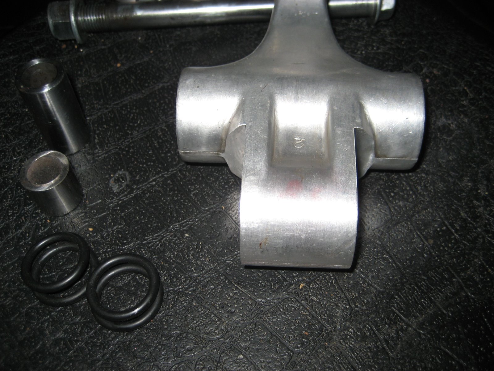 Have to pull the needle bearings to mill the suspention linkage to the spacing of the mainstand mount brackets.