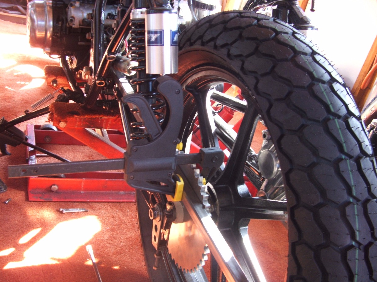 I am about to start on making the adapters for the rear wheel, so I can fit the factory rear brake disc and new sprocket.