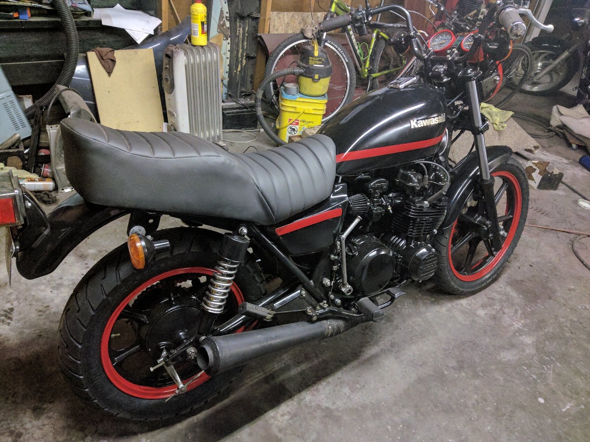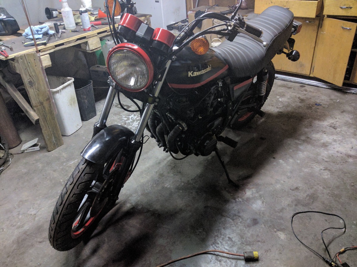 I plan to finish the last few things (clean tank, install exhaust, install front caliper) and start it up today. The bad thing is that i'm already dreaming of the next build! i'm thinking another kz550 frame, newer water cooled 1200 motor, forks/swingarm swap.