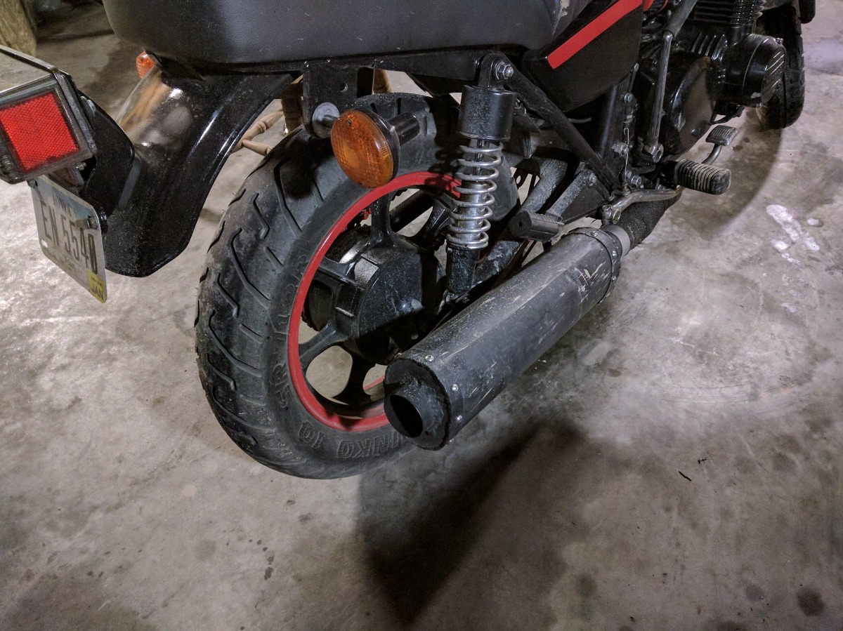 Got the new muffler made. Its totally jank as it was made out of scrap sheet metal that I had laying around but oh well, It sounds great! Its essentially just a large glass pack which has been stuffed with insulation. It makes a nice, deep tone instead of straight pipe scream (dunno how people deal with that?!). I'll probably use a glasspack of some sort on future builds as the sound is great!