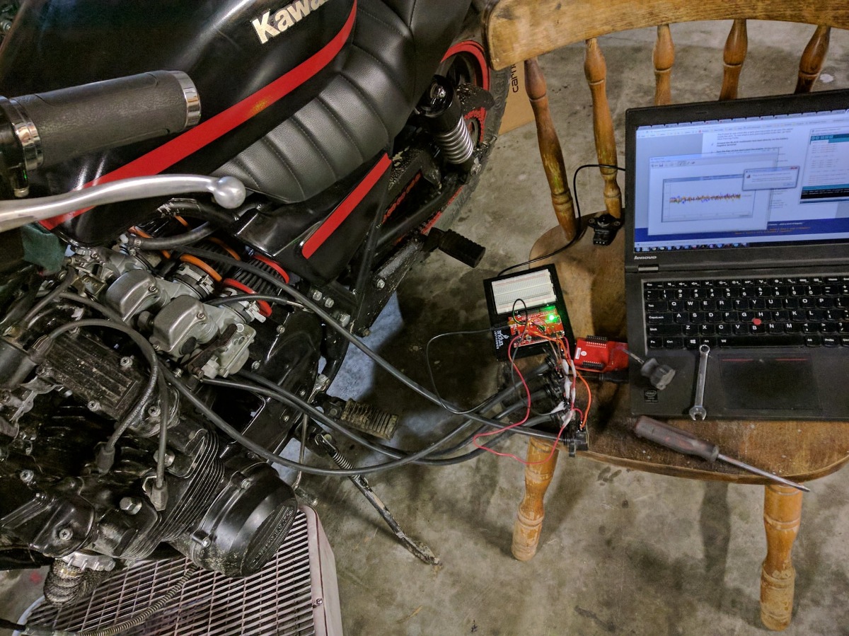 Just a bunch of vacuum sensors and a microcontroller so I can graph each cylinder as a percent difference from the average of all the sensor values. So, yeah, carb sync is spot on now!