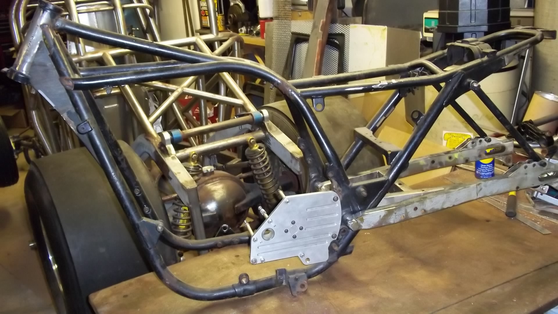That's a wide tire 200. Do I see a stock sprocket cover in a picture? Usually that rear would need a 5/8" offset front. I've done this a few times and have went down to 530 chain. And it fits right along the inside of frame rail. I have seen guy's cut a notch out of frame and plate it off to get that 1/4" or so. Do you plan doing hole shots from a dead stop as in at the drag strip? Then the offset front should have a bearing support. If it is just a show night cruiser? You might be able to machine off the bearing cup? I have and old pic somewhere?