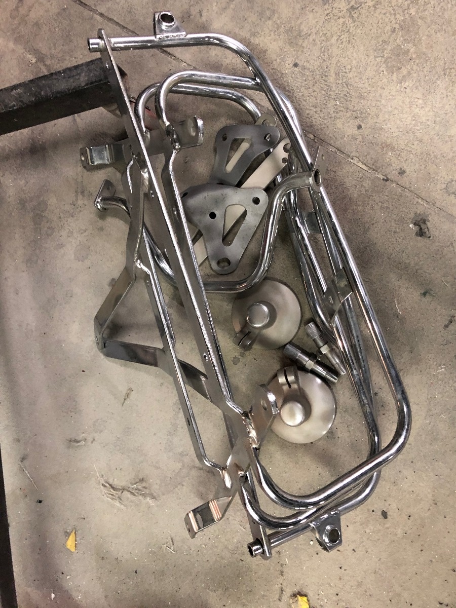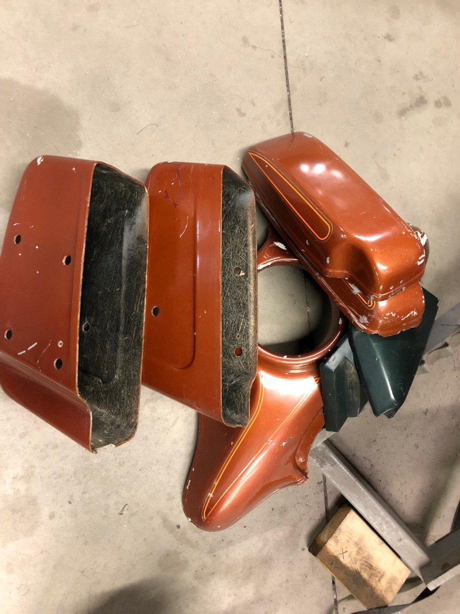 That site didnt have any of the stickers I need for the 400 rebuild, but thanks they have a ton of stuff, Im going to check it out. Got some more blasting done today, I think this is the last batch of stuff that needs powdered. Prepped the faring, side covers and saddle bags for the bodywork, have some solution to dissolve any rust in the gastank, should have that thing prepped early next week. The hinges on these saddlebags are totally worn out, going to look for a nice replacement for that and the lock. Got the switches powdered, they look great, hopefully I'll get to rebuild those early next week. The seat pan turned out nice, was only able to salvage one of the service stickers under it. Another productive day.
