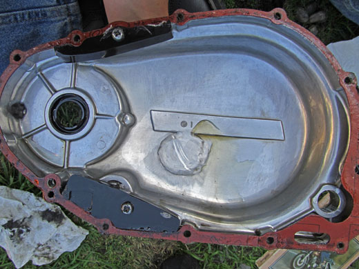 The shop also pointed out that the valve cover had a hole in it. Wonder if that contributed at all to the high idle. Welp, another bit to take off the parts bike. the Hole in question.