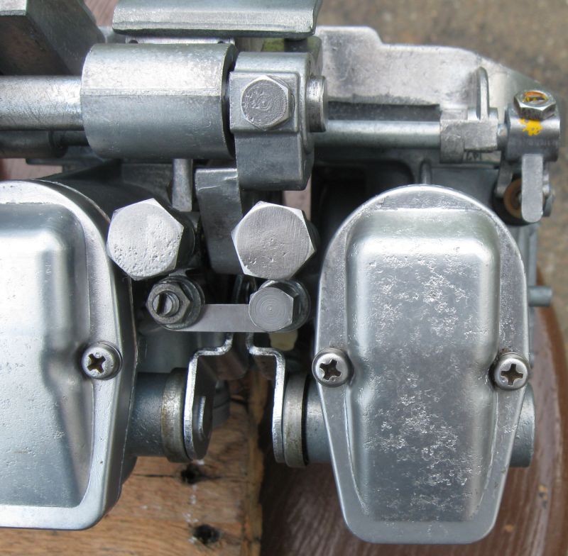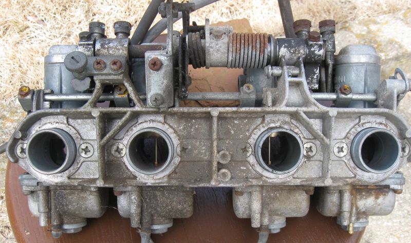 Internally the carbs were surprisingly clean, with only one pilot jet clogged. The whole rack had obviously never been molested, so the basics were still sound. Linkage parts were all reused after cleaning.