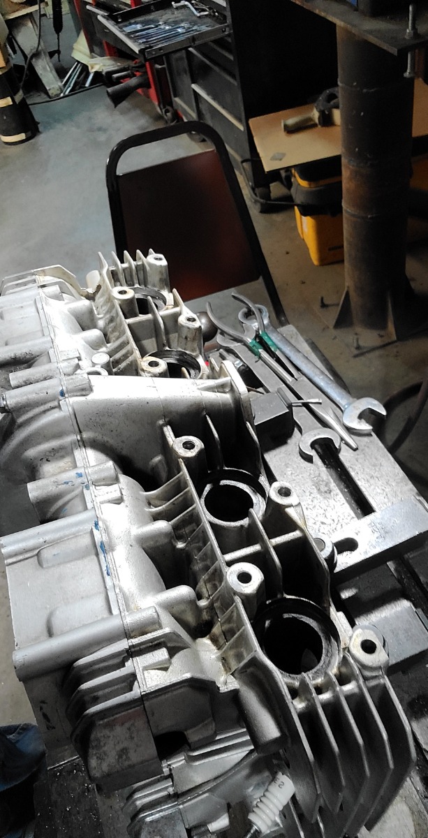 I did snap one of the 8mm case bolts for my outside crank bearing so that sucked. No worries though I took the upper case half in to work and used the ol bridgeport to extract said bolt and clean up the threads, though they are a bit looser now. Im thinking it'll be ok as I already tested out to make sure it holds the proper torque without tearing the threads out, and torque value for that bolt isn't that high anyways, plus fsm calls for some thread locker on it.