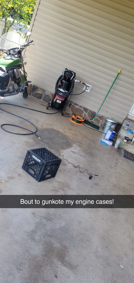 Sorry no pictures this time, but I'll make sure to get some in the next week or so to show my blasting set up and the Gunkote application, hoping to get the cases coated and ready for rebuild before I go on vacation the first week of June. Darn vacations interrupting my bike schedule.