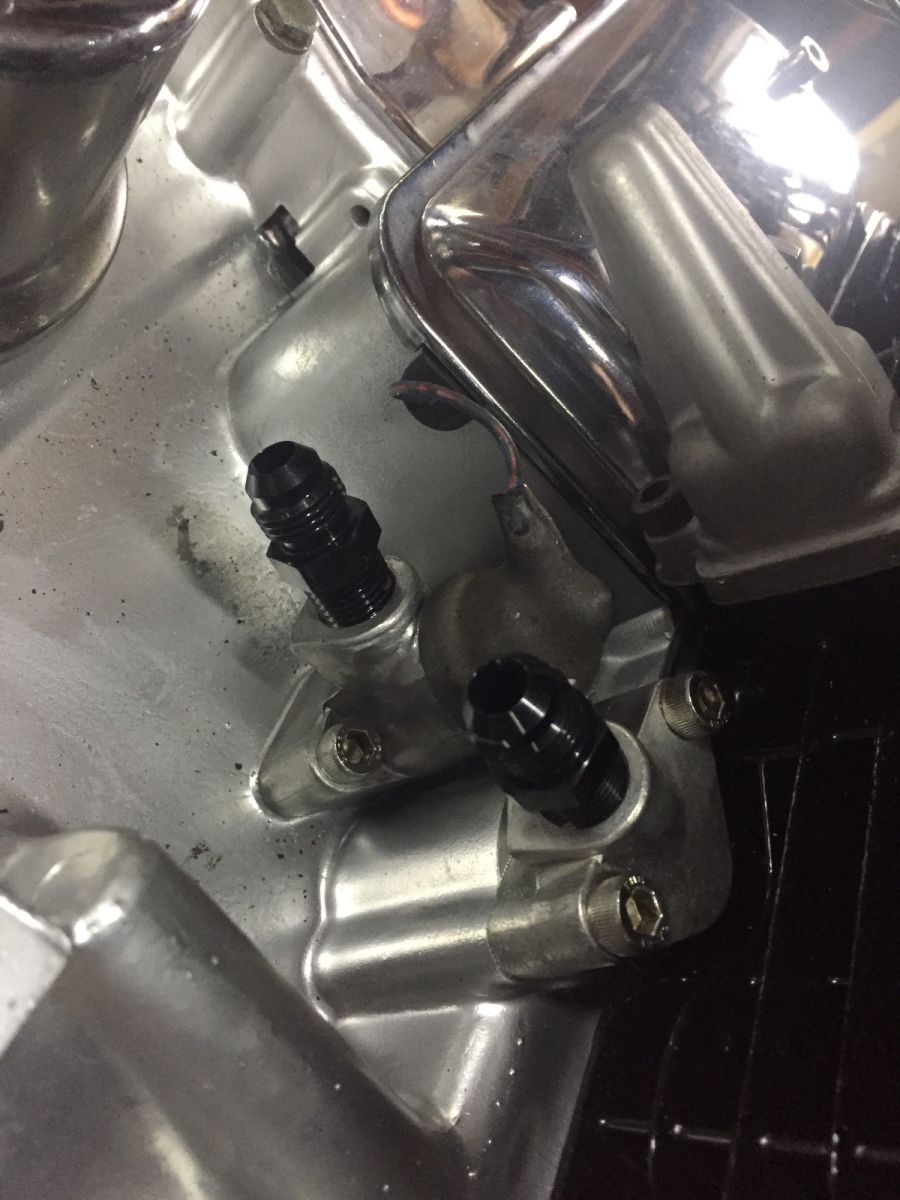 And got about 90% done with the oil cooler lines. Need another 90 bend to clear the header.