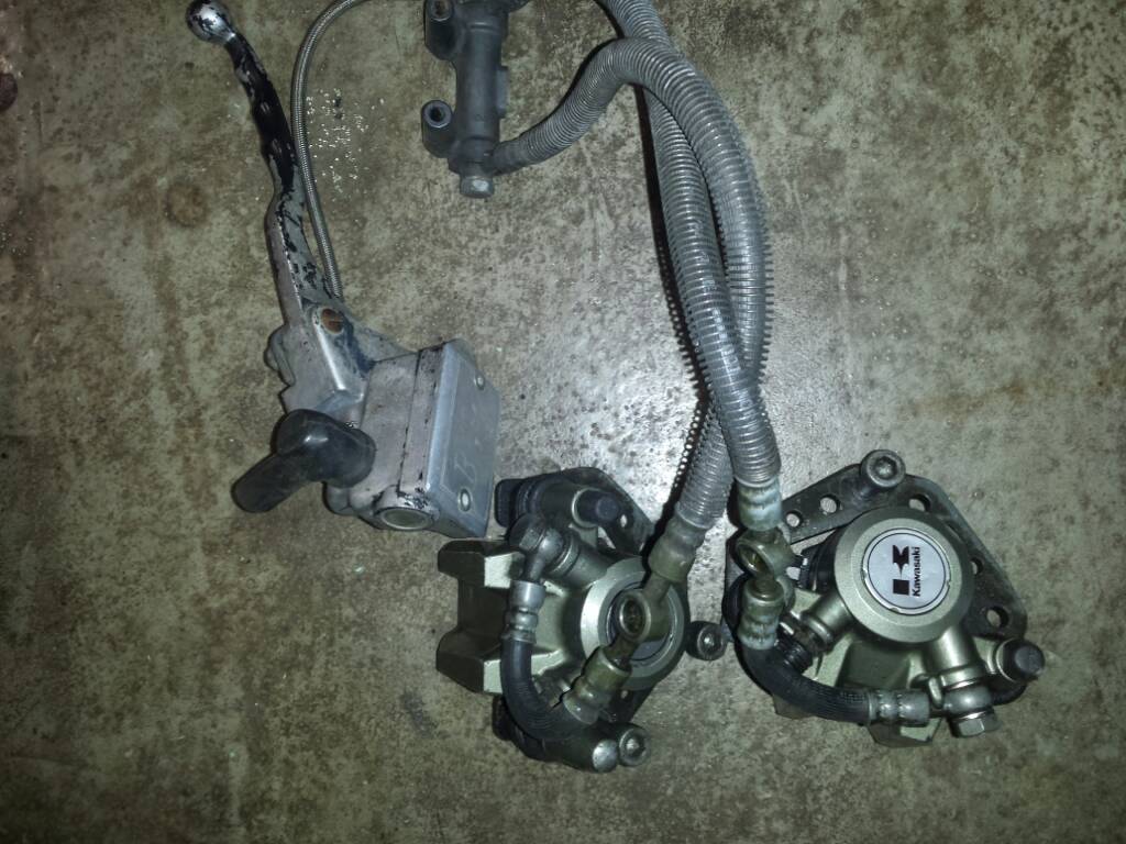 But I saved 35€ yesterday when I discovered a second brake disc in one of the boxes. Together with the brake system of a GPZ 900 I can control the murderous power of almost 40hp with a double instead of a single disc brake.