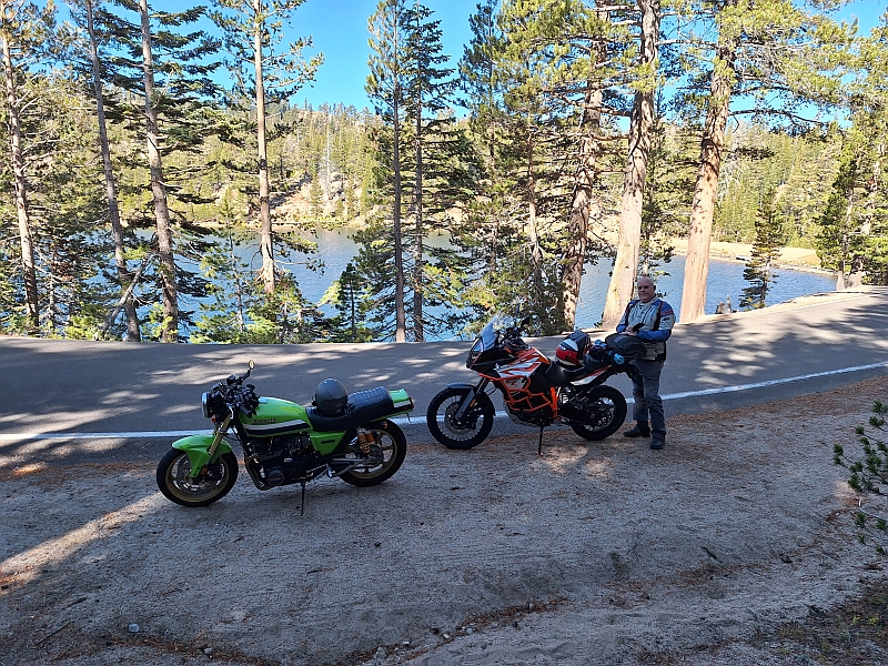 How to pass on a motorcycle. Last Saturday I spent all day passing! Simee Dimeh Pass, Monitor Pass, and Ebbetts Pass, that is. I had a friend from out of state tow his motorcycle here, and we took off into the Sierra Nevada mountains. Had a great time cruising around some great scenery. The KZ didn't care for the higher elevations, just with the idle (which it didn't want to up there). It ran fine with a small amount of throttle while coming to a stop. We ate lunch in Markleeville before heading back to my place. The trip logged 130 miles of riding, and many more smiles!