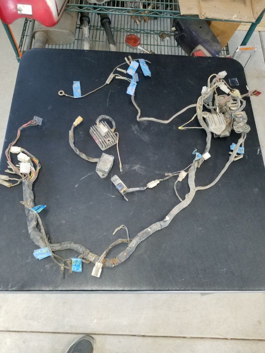 I started to clean the wiring harness yesterday. By the time I got to the main bracket holding most of the components, and got rid of the spider webs and egg sacs, it was obvious the bracket requires refinishing (like everything else on this bike!). Now that I have blasted it clean, I am realizing I have enough parts to warrant another run to the powder coat shop. I was wrestling with the idea of repainting a lot of pieces myself, but the winter temps here are not friendly to painting. Besides, powder coat is stronger, better looking, and more scratch resistant than paint.