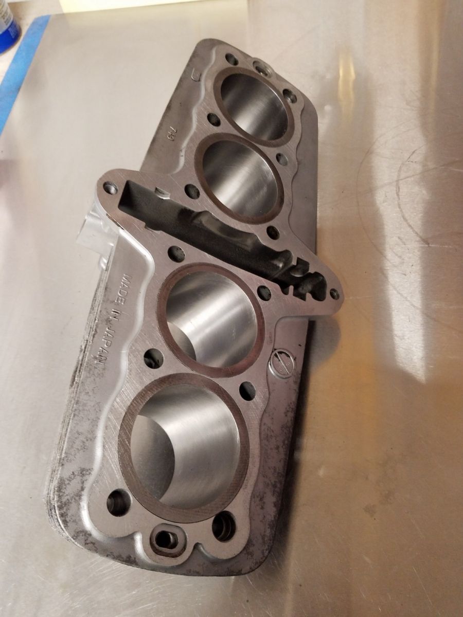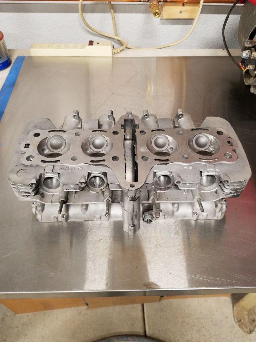 The new top end is ready to go. I had the valves, guides, seals, etc. replaced, and the cylinders bored. I had to go to 67 mm bore, and found a set of pistons in Florida. They are 10.5:1 compression, so all the head studs are being replaced. I still have some cleaning to do before paint on these.